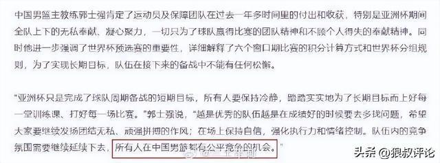 不如说说能变的,本来就没几个能打的,最起码的机会能不能给?你不能说亚洲杯打得不错,有些人就真出现在世界杯上吧,亚洲杯也只是亚洲杯,不要再打着“着眼于2027年男篮世界杯及2028年洛杉矶奥运会的人才考察、锻炼与储备”的口号,为什么有人一直能进集训名单,他、他、他到底有进步吗?他真是2027年和2028年的人才吗?