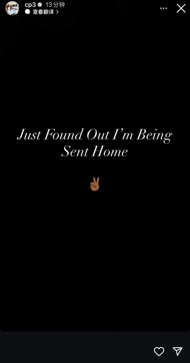 在快船前往亚特兰大准备客场对阵老鹰的比赛之前,队中所有球员前往机场,唯独老将保罗被球队单独通知,随后保罗第一时间更新个人社交平台: