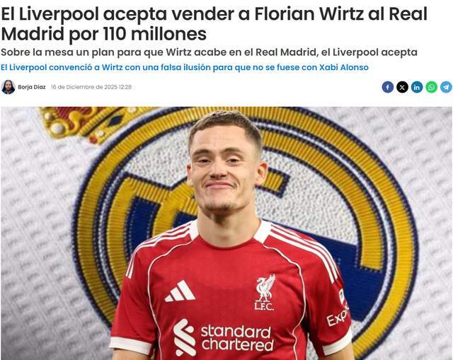 净亏4000万!西媒:利物浦愿以1.1亿欧元将维尔茨卖给皇马